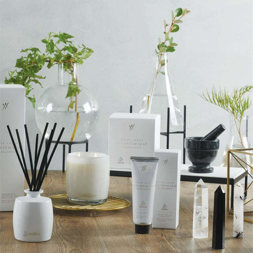 Drawing from our extensive library of signature scents our latest collection brings together two complementary fragrance blends combining in such a way to enhance the qualities of each other as well as working beautifully alone. Both complementary fragrances in the collection have been meticulously blended to stand alone or can be layered together in the one space to create a more magical mystical fragrance.