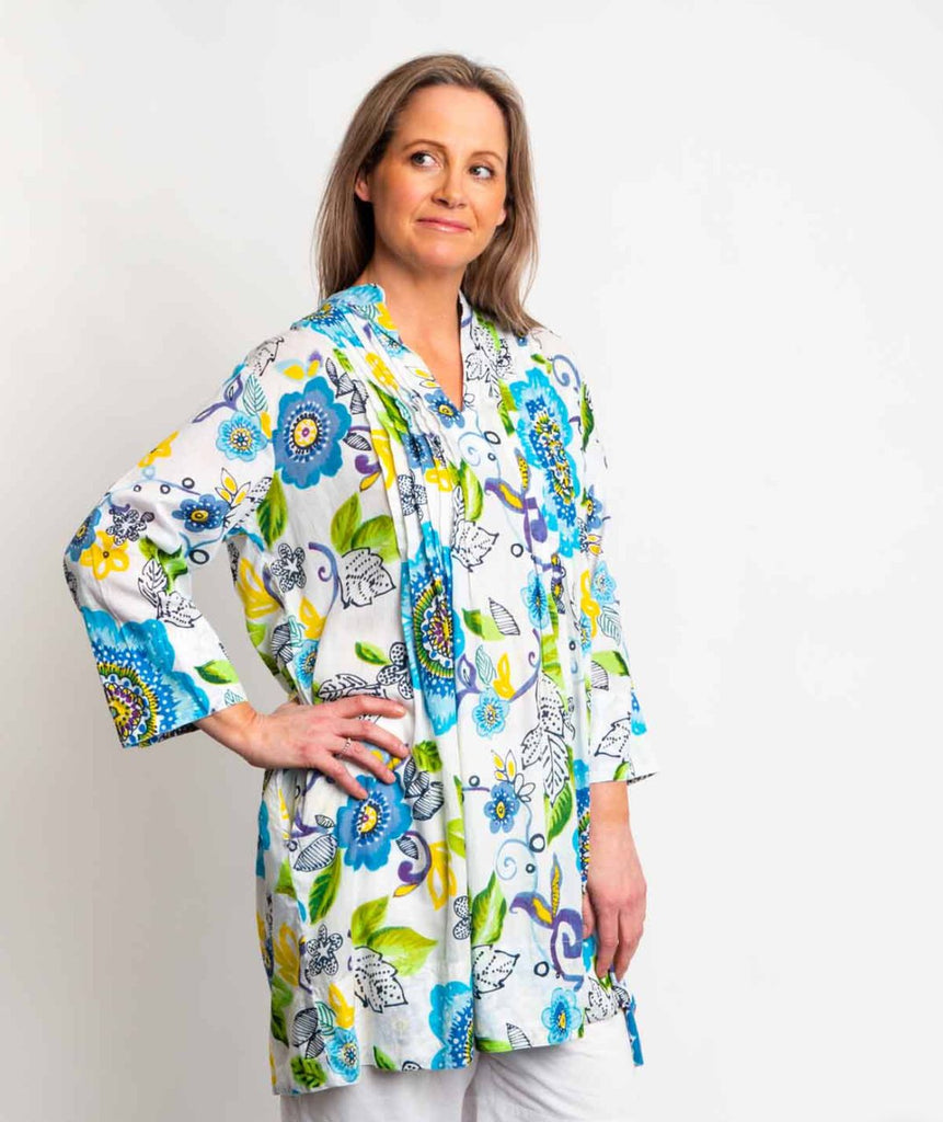 MOZAIC Tunic Style Top - Aqua/White Floral