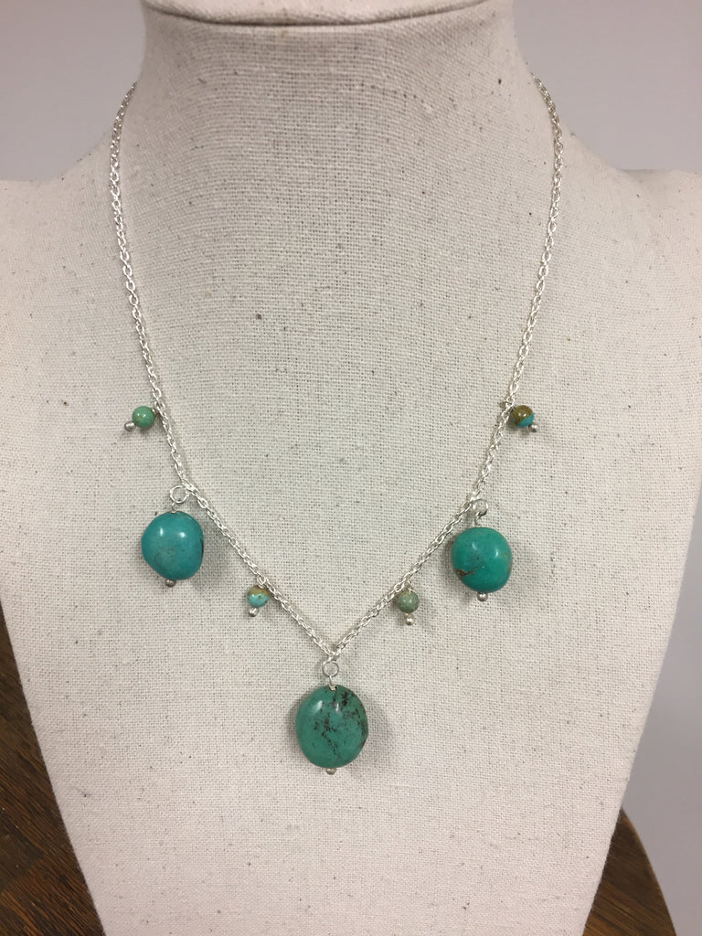 RUMITurquoise necklace featuring different sized polished stones to create a flattering V